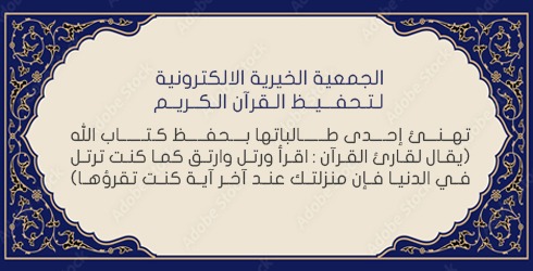 الحمد لله الذي علَّم بالقلم، وعلم الإنسان ما لم يعلم، و سخر له الأسباب لنشر العلم وإذاعته.. وصلى الله وسلم على محمد وآله وصحبه وبعد.. فإن (الجمعية الخيرية الإلكترونية لتحفيظ القرآ...
