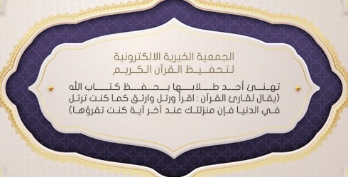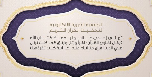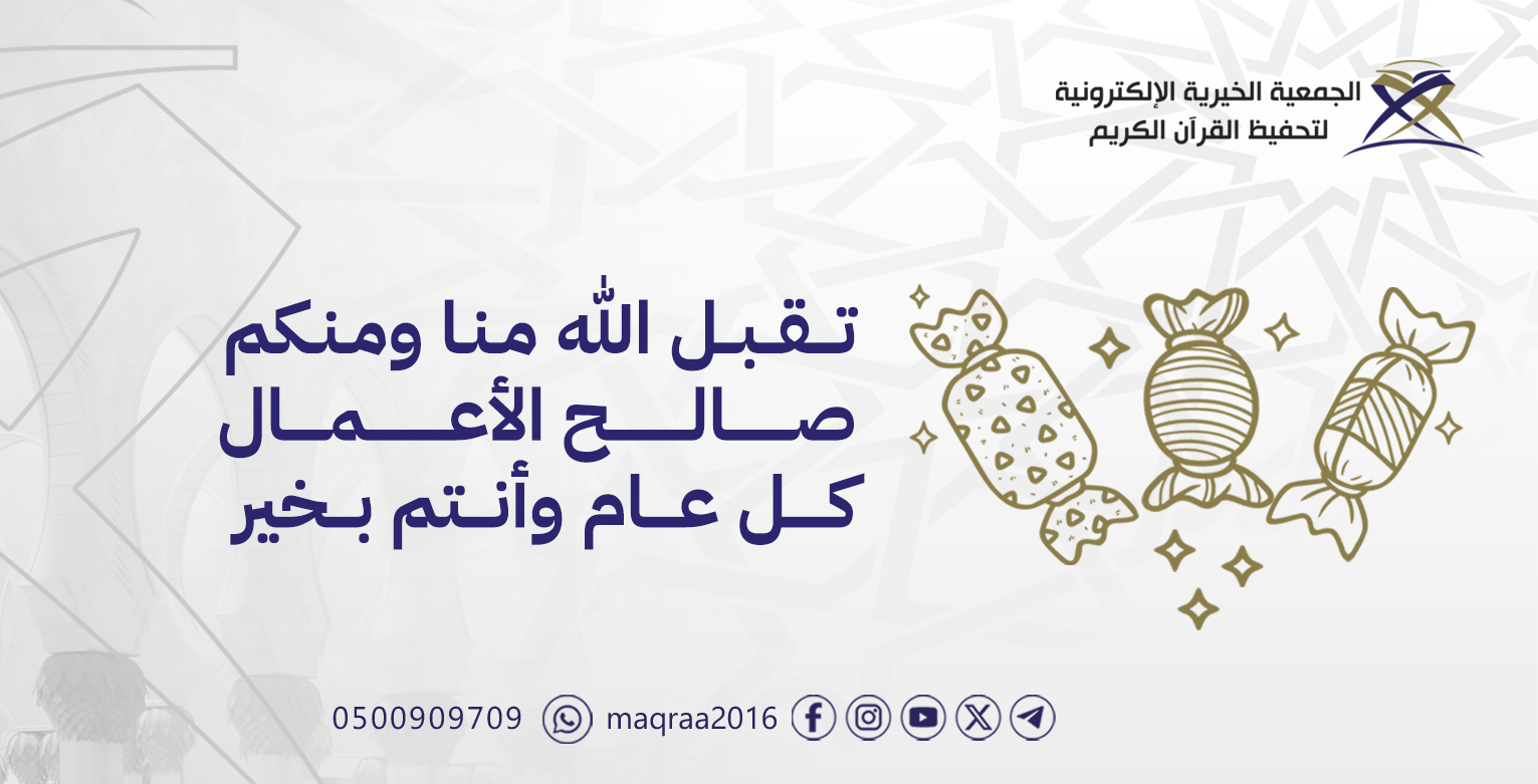 الجمعية الخيرية الالكترونية لتحفيظ القرآن الكريم: تهنئكم بحلول عيد الفطر المبارك وتقبل الله منا ومنكم صالح الاعمال والأقوال وكل عام وأنتم بخير