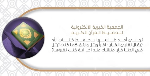 الجمعية الخيرية الالكترونية لتحفيظ القرآن الكريم تهنئ: خادم الحرمين الشريفين الملك سلمان بن عبدالعزيز و ولي عهده صاحب السمو الملكي الامير محمد بن سلمان بذكرى يوم التأ...